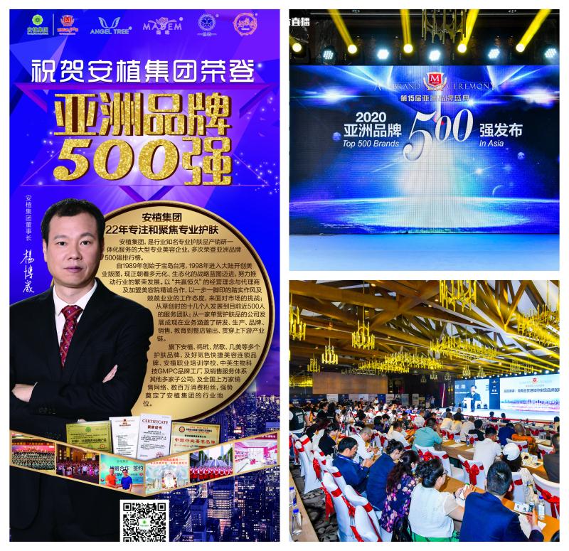 2020年9月9日,第15届亚洲品牌盛典海南自贸港隆重盛大举行,现场隆重发布了“2020亚洲品牌500强”排名价值榜单,作为本土行业中的知名专业护肤用品企业“安植集团”再次上榜,据此已是至今第八次登上该权威榜单了。